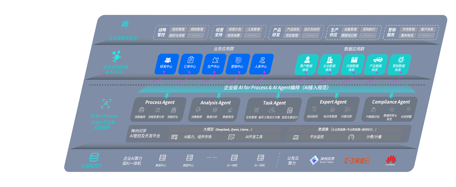 UED问学智车解决方案是一套基于AI技术的汽车行业智能化系统,,覆盖从底层算力到顶层AI应用的全栈方案。。。方案由算力层、、模型层和应用层组成:算力层,,,方案支持多种一体机配置,,,具备云端灵活部署、、、、多云适配以及动态优化计算资源的能力;模型层,,,,UED问学平台版提供了企业级AI应用一站式构建与管理平台,,,支持基于后训练强化技术的汽车企业专属模型的训练、、评测和运营;应用层,,,UED问学DeepSeek版提供包括超级员工、、、智能招采、、、智能营销、、、智能客服、、、、AI for BI等一系列解决方案,,,可助力汽车行业实现数字化转型,,,让管理更智能、、、响应更敏捷。。。